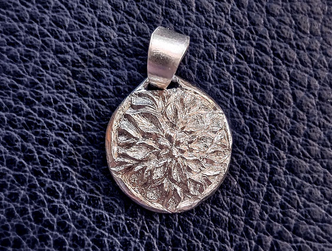 くるりと巻いた花びらが特徴的な菊のペンダントです。