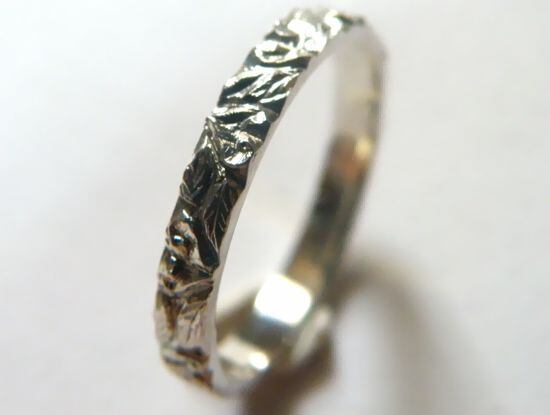 ツルを浮き彫りにしたハートに、引き立て役の葉っぱを添えています。